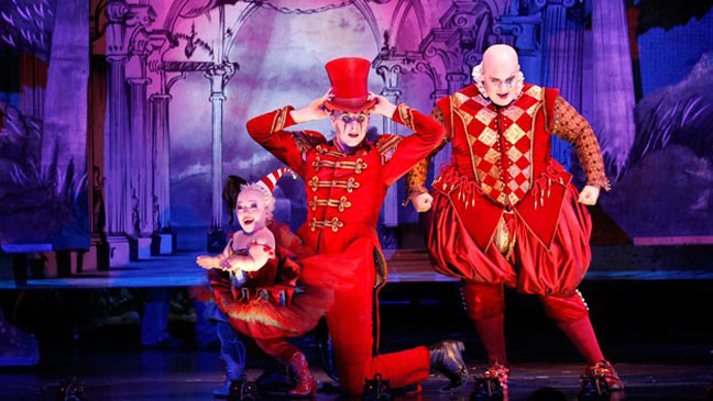 Following the triumphant opening number, comes the surreal colour splashes of The Coney Island Waltz, featuring Gangle, Fleck, Squelch (Dean Vince, Emma J. Hawkins and lyric tenor, Paul Tabone) and the ensemble. They introduce Mr. Y's (the Phantom's) Phantasma, an amusement park home to circus performers as well as outcasts of society like Mr. Y. himself. All the gorgeous razzle dazzle bursts like fireworks beneath a circus canopy almost as tall as the three storey stage, topped by the platform where the Phantom sits reigning and watching over the excitement. Acts of all kinds – a dancing bear, a familiar looking monkey with cymbals on a wagon being towed by a giant tricycle, stiltwalkers, fire eaters and torch twirlers, and an elaborate fantasy carousel – share centre stage. But this is only the surface of the hula-palooza.