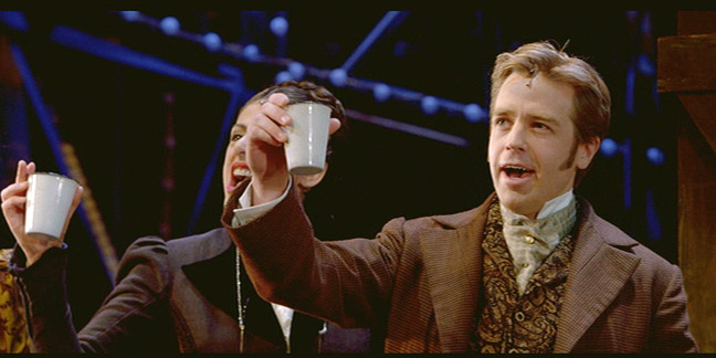 If some of the songs in Love Never Dies (LND) sound somewhat familiar, it's really no surprise. A number of them, such as Beneath a Moonless Sky, were first heard instrumentally as incidental and background music in Webber's The Phantom of the Opera (2004). The original Phantom theme and other song bits in turn are used in kind in LND. Wreathing the two productions together in LND in such a careful fashion not only created a solid musical link, it also successfully avoided forming identical peas in a pod. The 2004 film and LND are more like two rosebuds on the same branch tip; petals overlap musically and resemble each other in silhouette, but each is resoundingly distinct within. Other brief reprises from 2004 used in the sequel include passages from Stranger Than You've Dreamt It, Twisted Every Way, Little Lotte (which Simon Gleeson sings as Raoul), Prima Donna, and a reworking of All I Ask of You, with Gleeson again singing, Just Ask It of Me, to Christine in her dressing room before going onstage to sing the title aria. And from that endpoint, we return to the beginning of Love Never Dies (2011)....