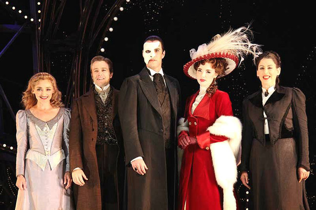 A few of the costumes Tylesova designed and worn by some of the cast in this photo from Love Never Dies, featuring Sharon Millerchip, Simon Gleeson, Ben Lewis, Anna O'Byrne and Maria Mercedes. (Photo: Matt Edwards)
