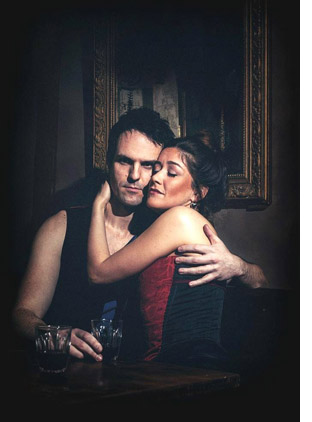 An advance publicity photo of Ben Lewis (the Phantom from Love Never Dies, 2011) as Laurent and Julie Atherton as the title character in Emil Zola's Thérèse Raquin, opening March 25th, 2014 at the Finborough Theatre in London. (Photo: Darren Bell)
