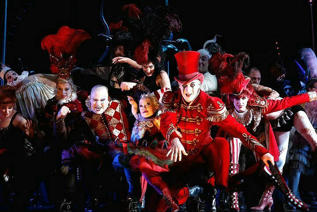 Master of Ceremonies Gangle from LND, Dean Vince, is another graduate from WAAPA, achieving his Bachelor of Arts (Musical Theatre) in 2002. He received a Green Room Award Nomination for Ensemble or Full Ensemble Performance for Love Never Dies in 2011, which included his Phantasma Trio cohorts, Paul Tabone and Emma J. Hawkins. Accentuating his dialogue and gesticulating with pantomime flair, in surreal face paint and costumed in a vibrant red ringleader uniform and tall red top hat, he was a great standout emcee.